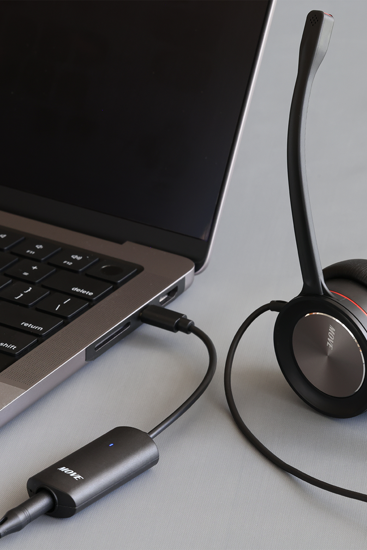 MAGIC MICは、PCとヘッドセットの間に繋ぐだけでノイズキャンセリング効果を発揮します。